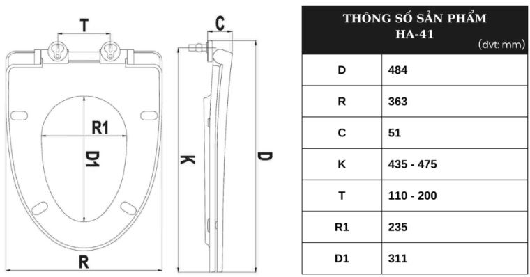 Thông tin sản phẩm Nắp bồn cầu Rơi êm HA41 :